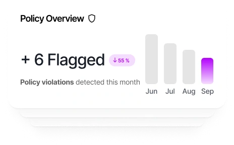 Stop errors before they happen. Every expense is automatically audited against policy, removing duplicates, enforcing limits, and preventing non-compliant spend at the source.